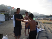 2006(平成18)年 活動 必勝祈願! 2006(平成18)年1月9日必勝祈願に行きました。 佐伎治神社にて ケーブルテレビ チャンネルO チャンネルOに取り上げていただきました。 2006年7月15日 中山直人選手 吉川類選手 民安右京選手 監督 勉強もしっかりしています バーベQ大会 バーベQ大会をやりました。 2006年8月5日 ビーチバレー 遠泳 スイカ割り 表彰 青葉球場 整備・清掃 青葉球場の整備、清掃をさせていただきました。 青葉球場に於いて 漁火想2006 漁火想のお手伝いをさせていただきました。 2006年7月29日 祝!卒・入団式 第6期卒団生と第9期入団生合同の卒・入団式 硬式少年野球「若狭高浜ボーイズ」の第6期卒団生と第9期入団生合同の卒・入団式が、国民宿舎『城山荘』において盛大に行われました。 卒団生の門出を祝い、新入団生を歓迎! 卒団生・入団生の集合写真 クリックすると拡大します。 2007年活動 2005年活動